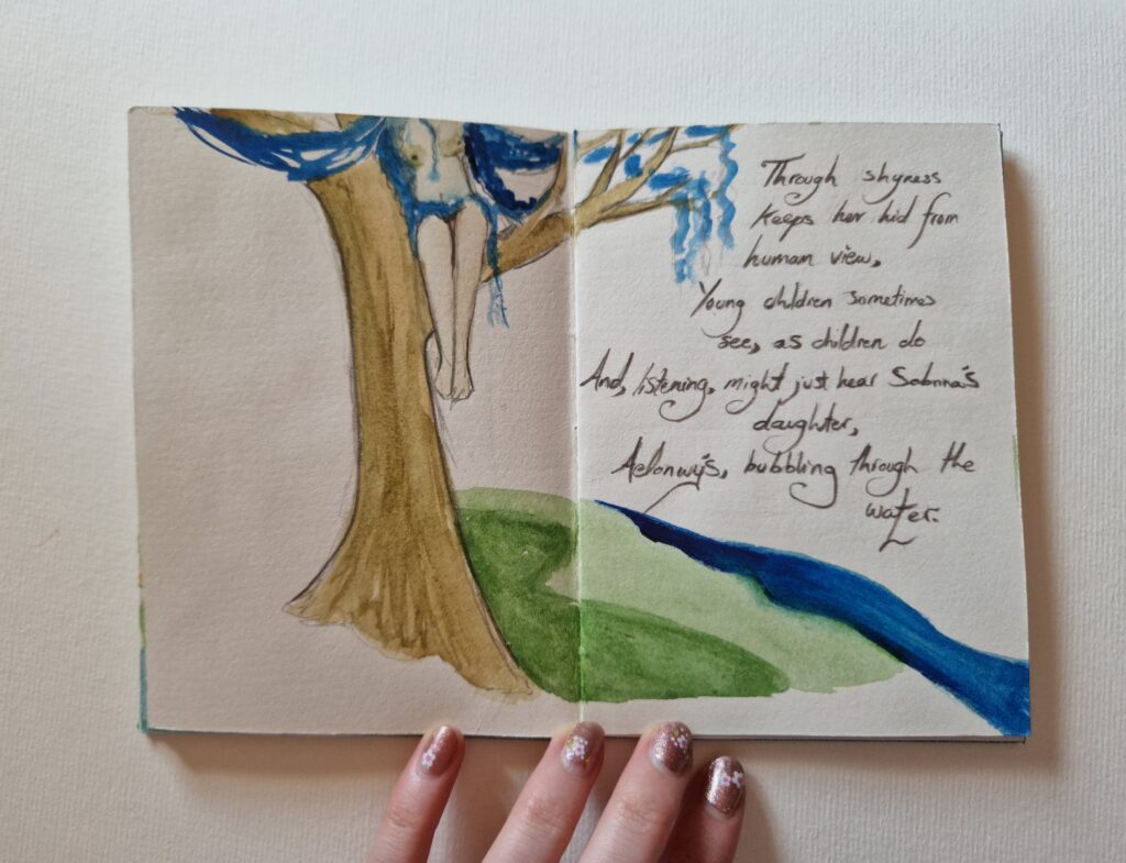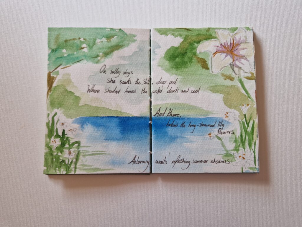 Stemming from that project I was approached to work with another poet creating Aelonwy (same name as the poem) about a Naiad called Aelonwy.